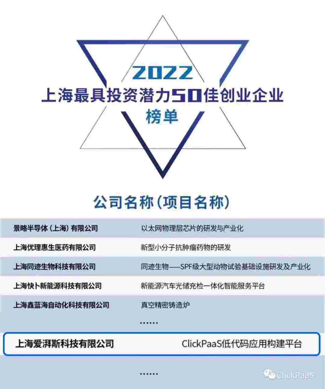 圆梦钱包 作为国内低代码PaaS平台的领军企业,,,,与120家创企入围角逐。。。期间接受了来自德同资本、、、领中资本等知名投资机构的10位投资人组成专家评委团的背靠背盲选。。并最终入围“2022上海最具投资潜力50佳创业企业”榜单,,,被列入“上海市重点培育创业企业库”。。。。
